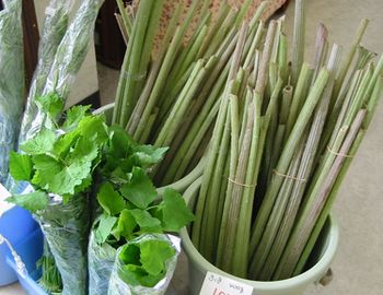 5月12日に蕗が初入荷して以来もうすぐひと月。 容器の高さほどだったのが、かなり成長しています~ 最近では塩漬けするときにも入荷してる?と聞かれることたびたび。 漬けるのは6月中頃かしら・・・ むかわ...