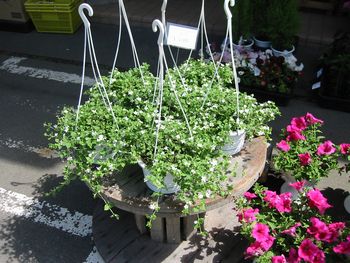 まだ降るのかな?と思いながらお店を開けた今日。 一時の間、太陽が顔を見せてくれました。 そうなると陽に当ててあげたくて、花類の並べ替えを・・・ 昨年は小さなプランターを飾っていた木製のコードリール、お...