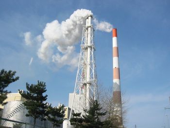 開店前にちょこっと用事でお出かけ。 青空が広がっている苫小牧の朝です。 風が少しあるので煙突からの煙はちょっとなびいていますが、車の中は陽があたりほぁ~っと暖かくて気持ち好かったです~