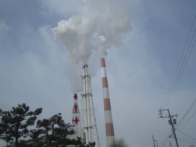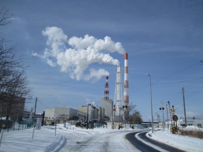 撮影 9:13 今朝もサラ~ッと雪が積もっていました~ いつもの王子の煙突 撮影 16:20 むかわ町からの帰り道 火力発電所の煙突