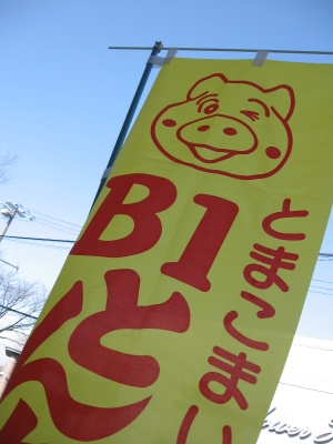 「B1とんちゃん お取り寄せ開始!」と以前に書きましたが、 そのB1とんちゃんののぼりが店先に加わりました。