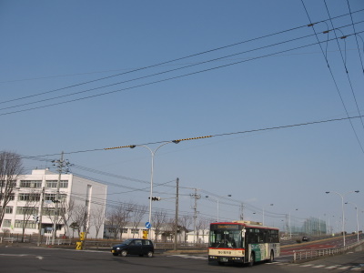 苫小牧市民にはおなじみの”苫小牧市営バス” 日曜日だからでしょうか、車の数が少ないように感じます~ 撮影 AM9:30
