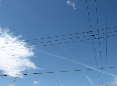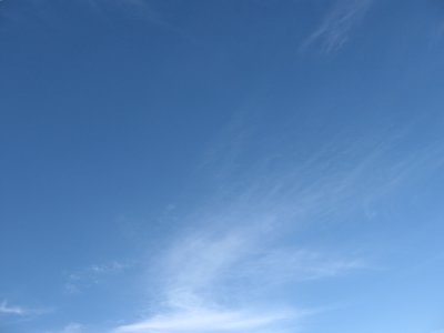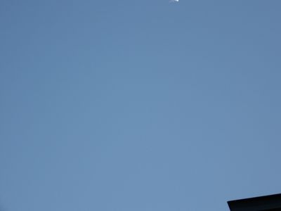 空の写真を撮そうと外へ出ると、飛行機が~ あわててカメラを構えてパチリ! 上の方に白く見えるのが飛行機? 下手です (×_×;) PM4:30 撮影